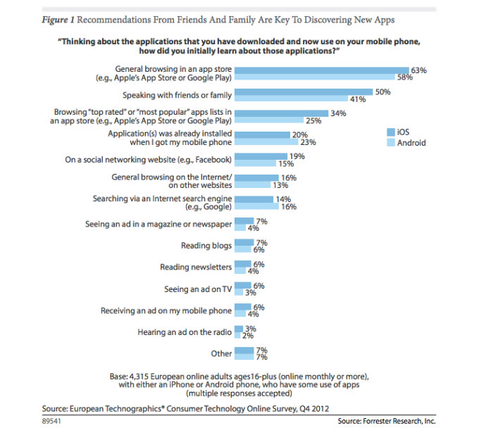 According to a Forrester study, 63% of apps are discovered through app store search. This was the largest app discovery method in the study.